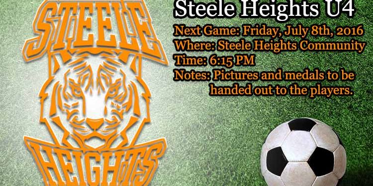 Steele Heights U4’s have a game this Friday, July 8th @ 6:15 PM at the hall.