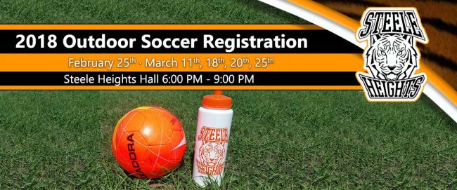 DetailsThe 2018 outdoor soccer registration is coming up soon! Be sure to check out our outdoor soccer information page here, http://www.steeleheightscommunity.com/outdoor-soccer/