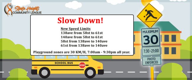 DetailsNew speed limit signs in our community. Be aware of the following areas: 138ave from 58st to 61st (used to be a school zone), 140ave from 58st to 61st (used to be a school zone), 58st from 138ave to 140ave (new), 61st from 138ave to 140ave (used to be a school zone). Playground zones are…